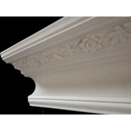 Reed lines through the ceiling part of this cornice with a leaf &fine vine woven through the fine reeds.